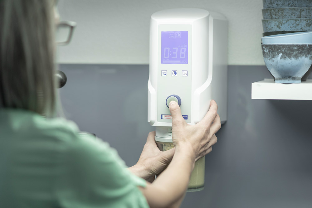 Im Verlauf eines Lebens verändert sich die Kiefersituation immer wieder, Knochen baut sich ab und der Kiefer atrophiert (schrumpft). In der Folge fängt die Prothese an zu schaukeln und hält nicht mehr gut. Um Prothesen auf die veränderte Situation anzupassen, macht der Zahnarzt einen Unterfütterungsabdruck. Wir ergänzen das fehlende Material und innerhalb weniger Stunden passt Ihre alte Prothese wieder wie angegossen.